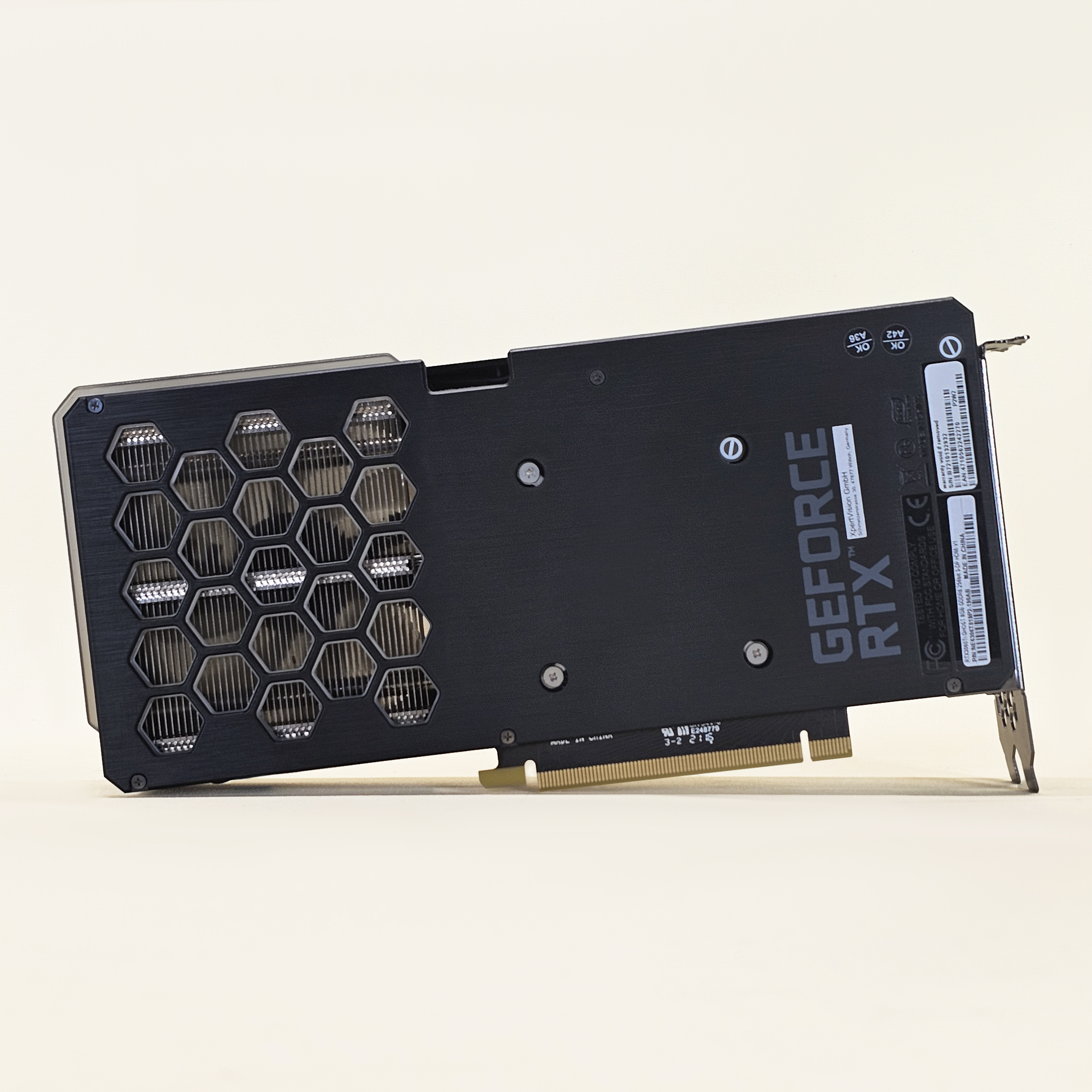 Дизайн и охлаждение: карта выполнена в двухслотовом форм-факторе и имеет двухвентиляторную систему охлаждения, ее длина составляет около 247 мм, что делает ее более универсальной по сравнению с более крупными моделями с тремя вентиляторами. Такая конструкция обеспечивает адекватное охлаждение, сохраняя при этом размеры, удобные для большинства корпусов;